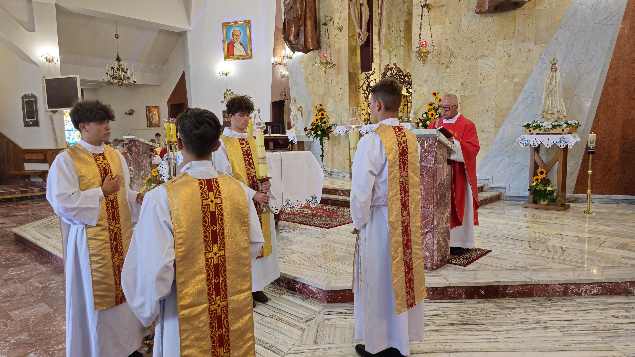 Suma odpustowa ku czci św. Maksymiliana Marii Kolbego w naszej świątyni parafialnej. Bardzo dziękujemy ks. prof. dr. hab. Markowi Kluzowi, Dziekanowi Wydziału Teologicznego w Tarnowie i wykładowcy Teologii moralnej w Wyższym Seminarium Duchownym w Tarnowie za przewodniczenie Mszy św. i wygłoszoną homilię.